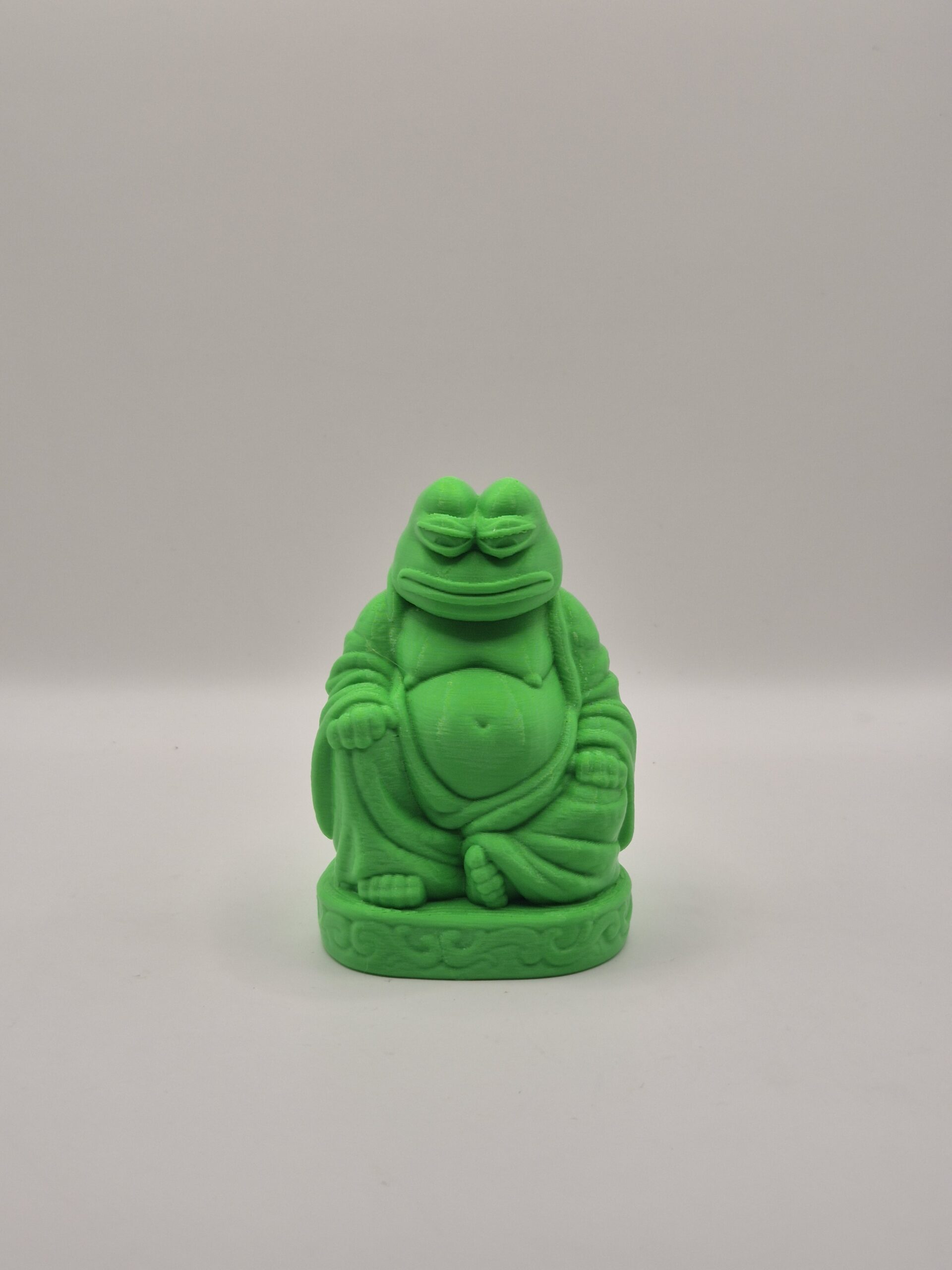 Figura decorativa de Buda Pepe, una reinterpretación zen del ícono anfibio más polémico de internet. Ideal para altares irónicos, escritorios, repisas o como recordatorio silencioso de que la paz interior no siempre es seria. No garantiza iluminación, pero sí conversaciones incómodas.