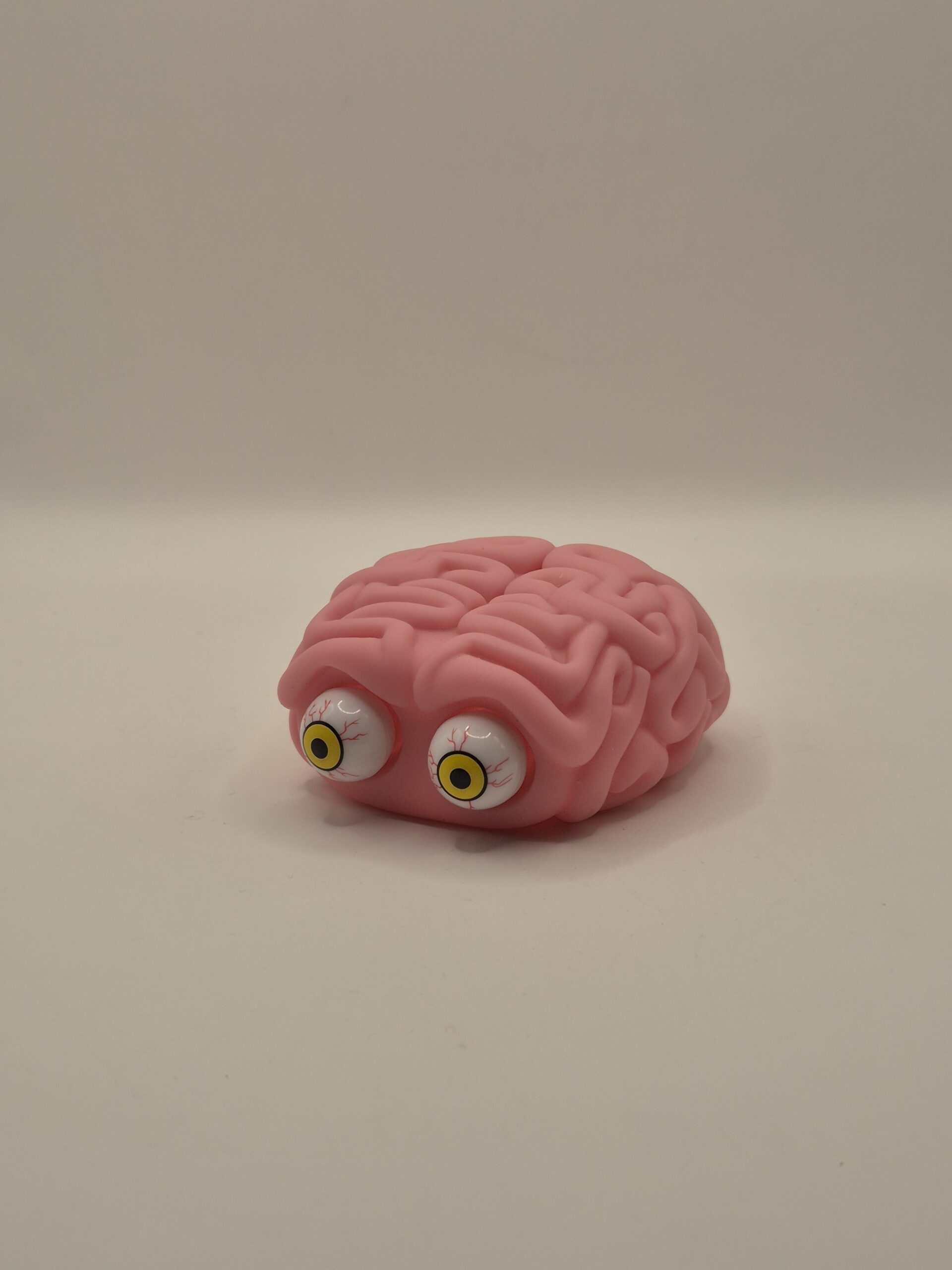 Cerebro de goma con ojos saltones que literalmente se le salen cuando lo aprietas, porque a veces así es como te sientes por dentro.