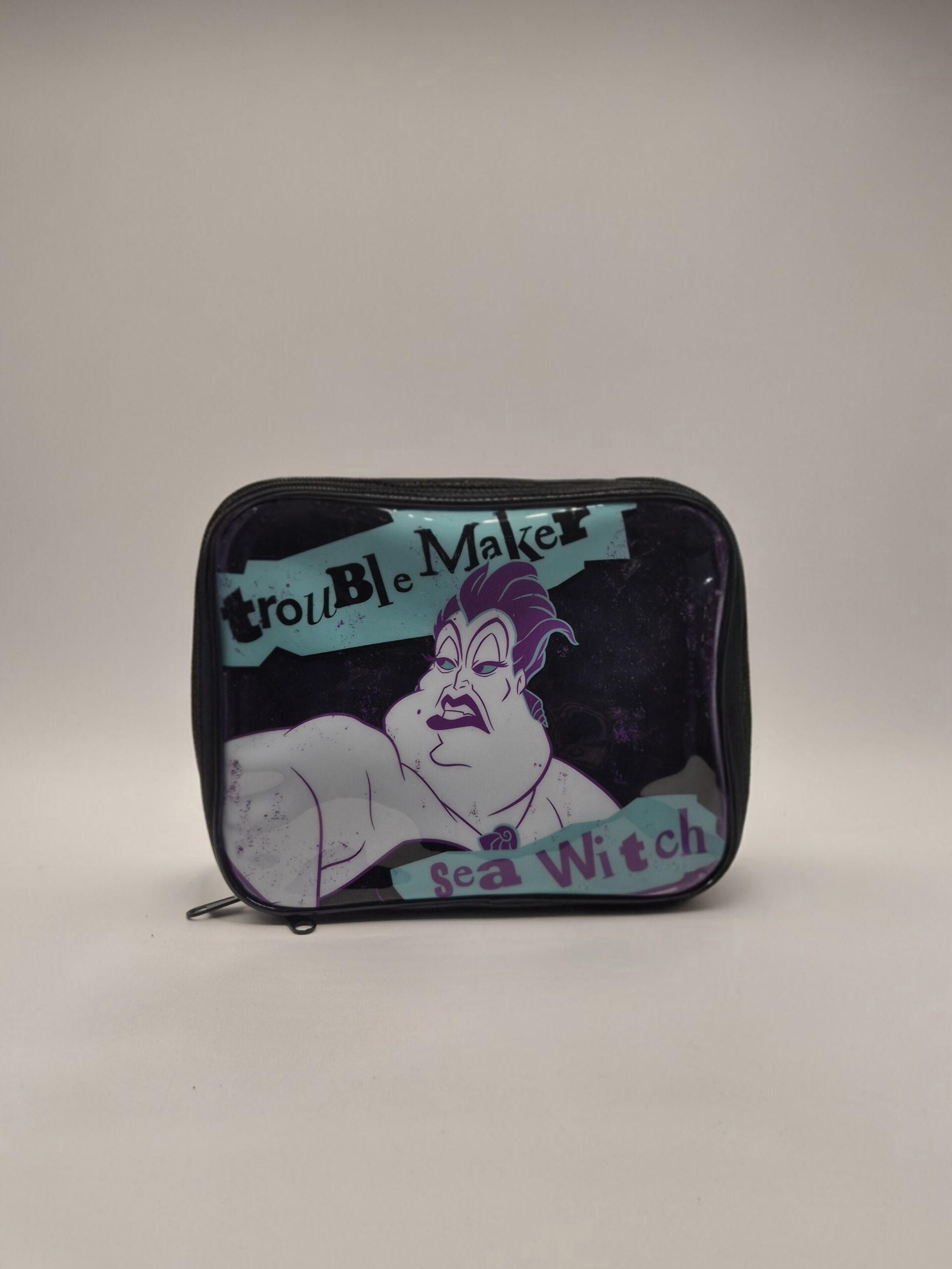 Uso: cosmetiquera / estuche de maquillaje Material: fabricado con materiales resistentes y acabado con capa plástica protectora Diseño: Disney Villains – Ursula “Sea Witch” con texto “Trouble Maker” impreso