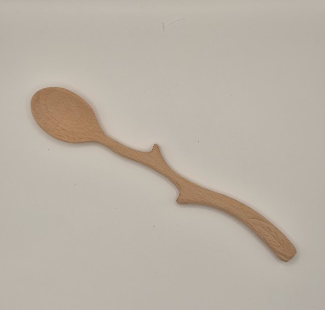 Cuchara tallada en madera con forma orgánica y sinuosa, inspirada en ramas y símbolos naturales. Su diseño recuerda a objetos ceremoniales o utensilios de fantasía medieval, perfecta para quienes disfrutan una estética rústica, mística o cercana a lo artesanal. Funciona tanto como pieza utilitaria ligera como objeto decorativo en la cocina.