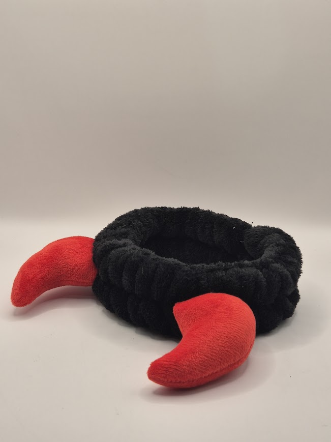 Diadema suave y elástica con cuernos de diablo acolchados. Ideal para rutinas de maquillaje, skincare, limpieza facial o simplemente para verte sospechosamente adorable mientras te lavas la cara. No aprieta, no jala el pelo y cumple su función sin drama (el drama lo pones tú).