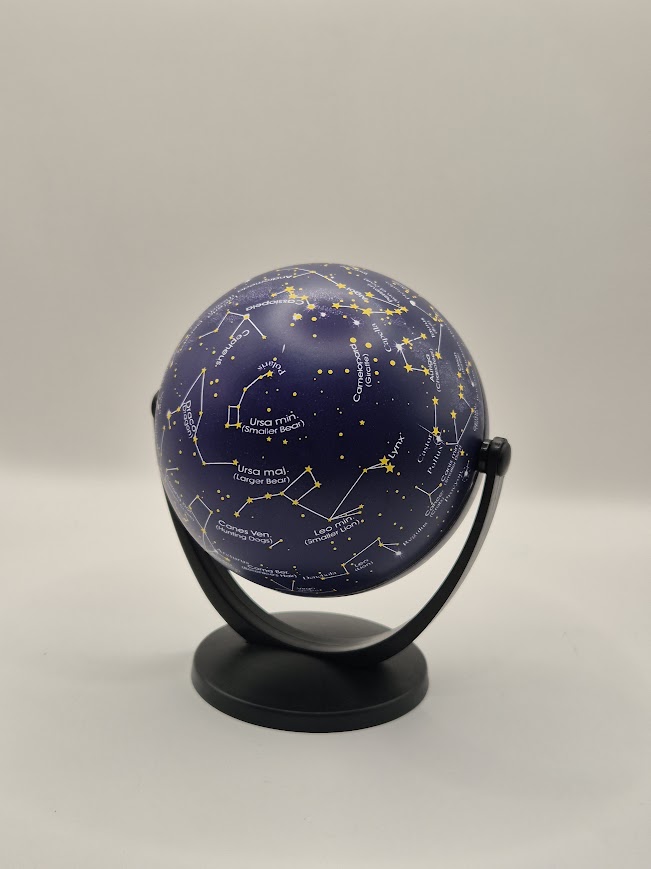Globo celeste con mapa de constelaciones, ideal para escritorio, repisa o para fingir que sabes ubicar estrellas sin necesidad de aplicaciones. Decorativo, didáctico y claramente más ambicioso que un globo terráqueo común.