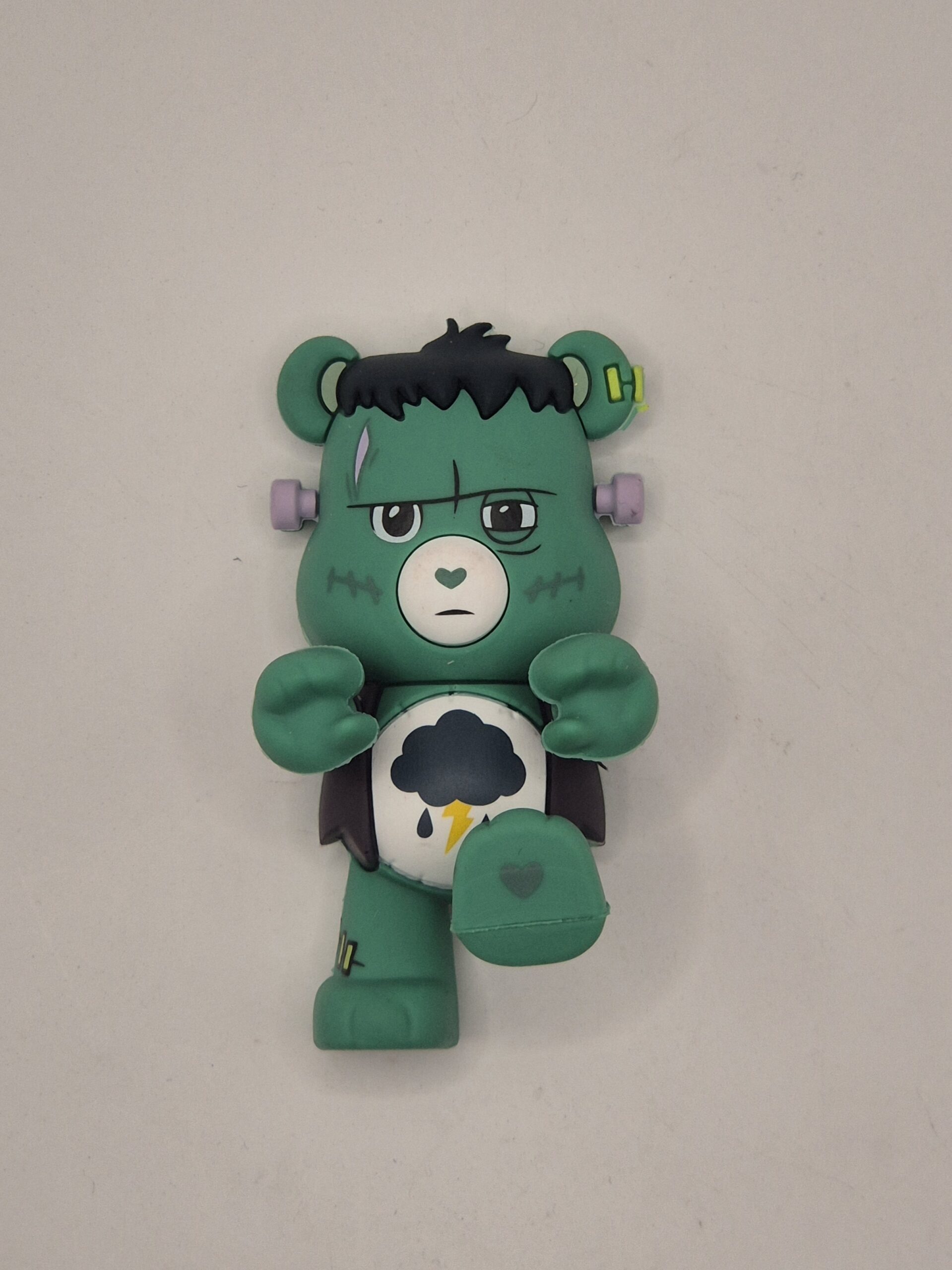 Material: vinil mate con imán en la parte posterior. Diseño: oso verde con detalles de Frankenstein. Tamaño: aproximadamente 8 cm de alto. Imán fuerte.