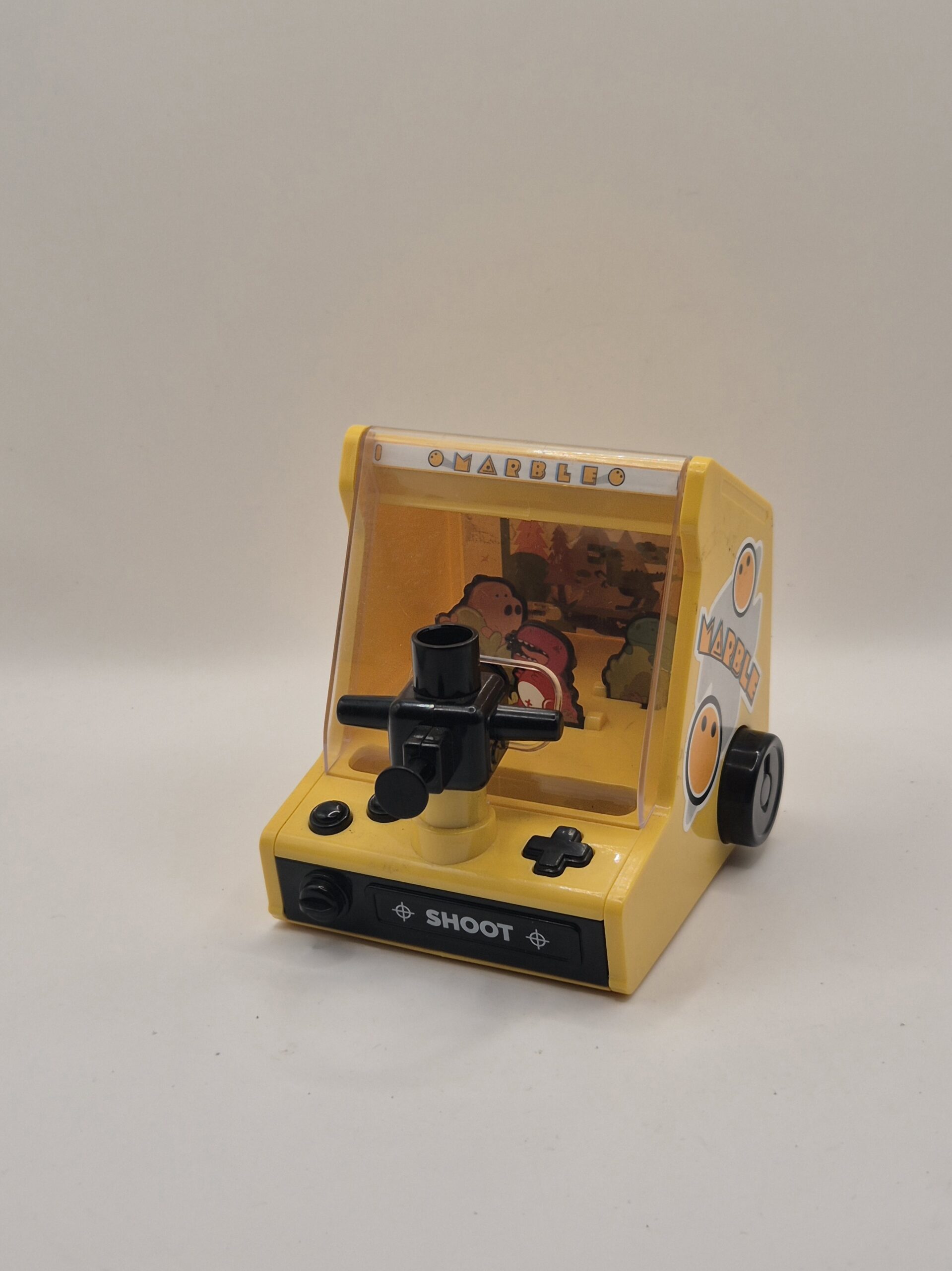 Mini juego tipo pinball de canicas, compacto y manual, perfecto para matar el tiempo, entrenar la puntería o fingir que trabajas mientras compites contigo mismo. No necesita pilas, solo paciencia, pulso firme y una tolerancia sana a la frustración. Ideal para escritorios, mochilas o ataques repentinos de nostalgia arcade.