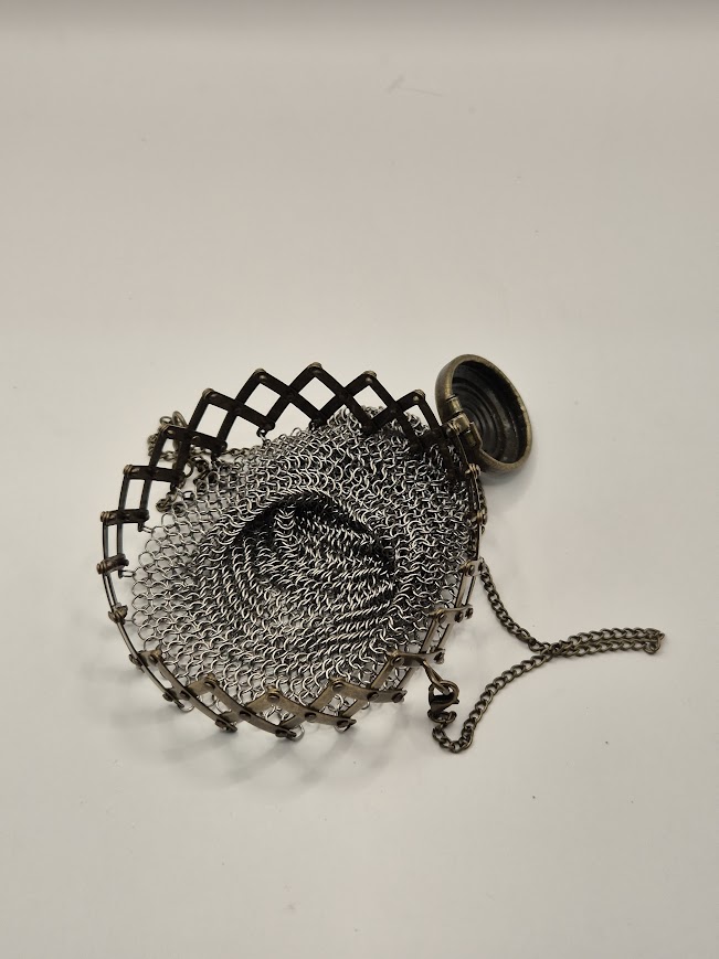 Monedero de cota de malla metálica, ideal para cargar monedas, objetos pequeños o sentirte un poco caballero aunque solo vayas a la tienda. Resistente, pesado y claramente innecesario para la vida moderna, pero muy satisfactorio.
