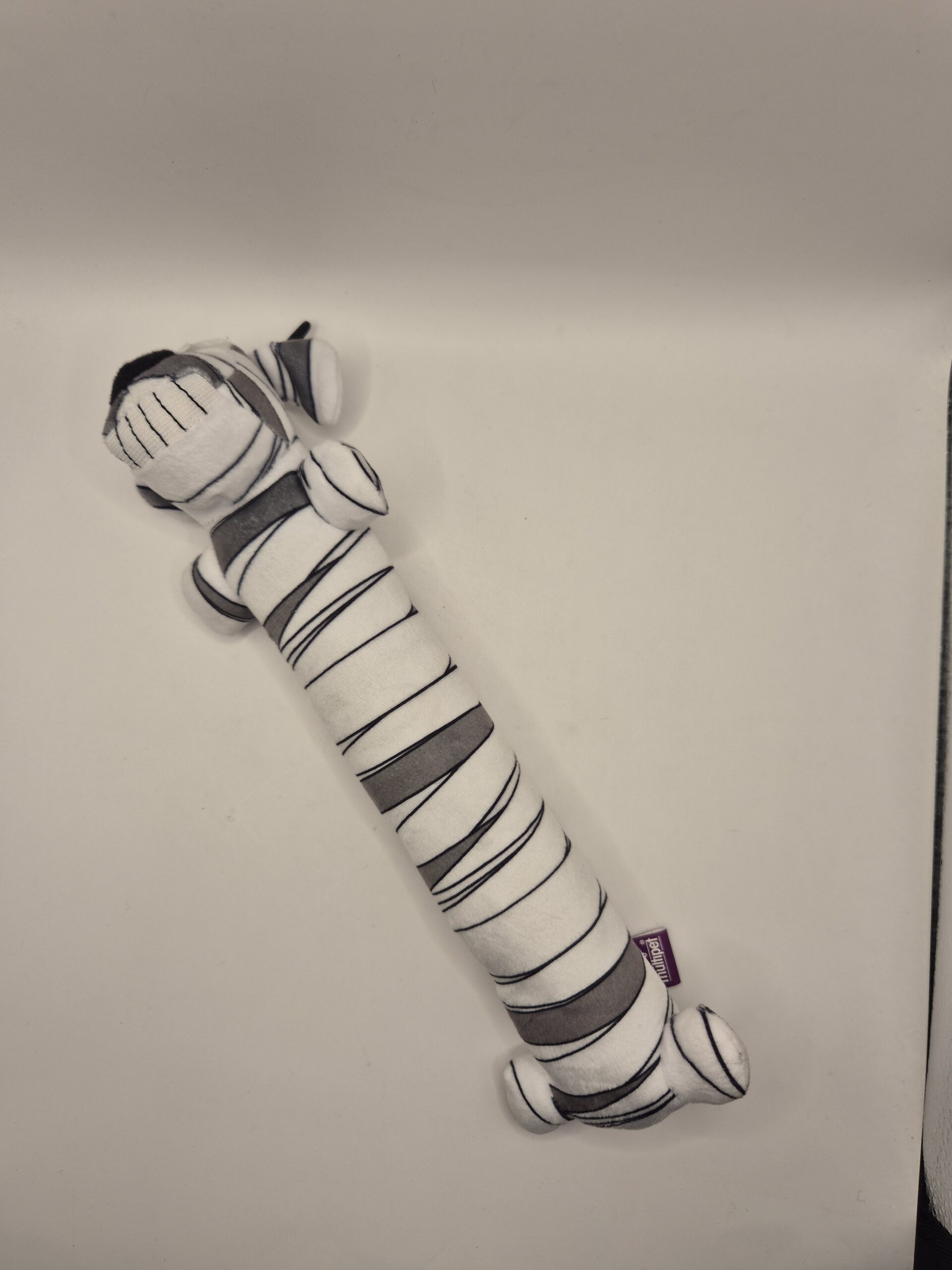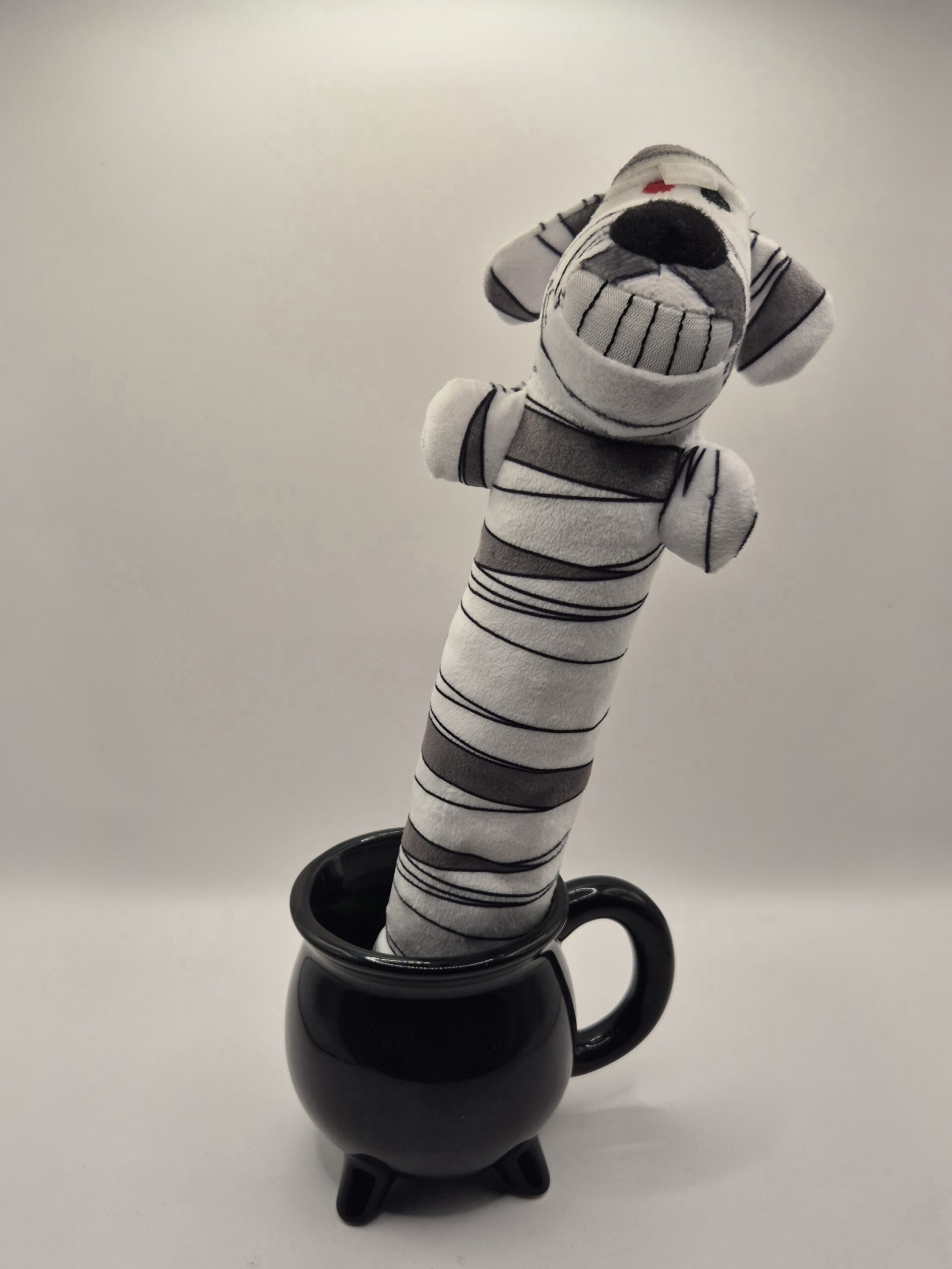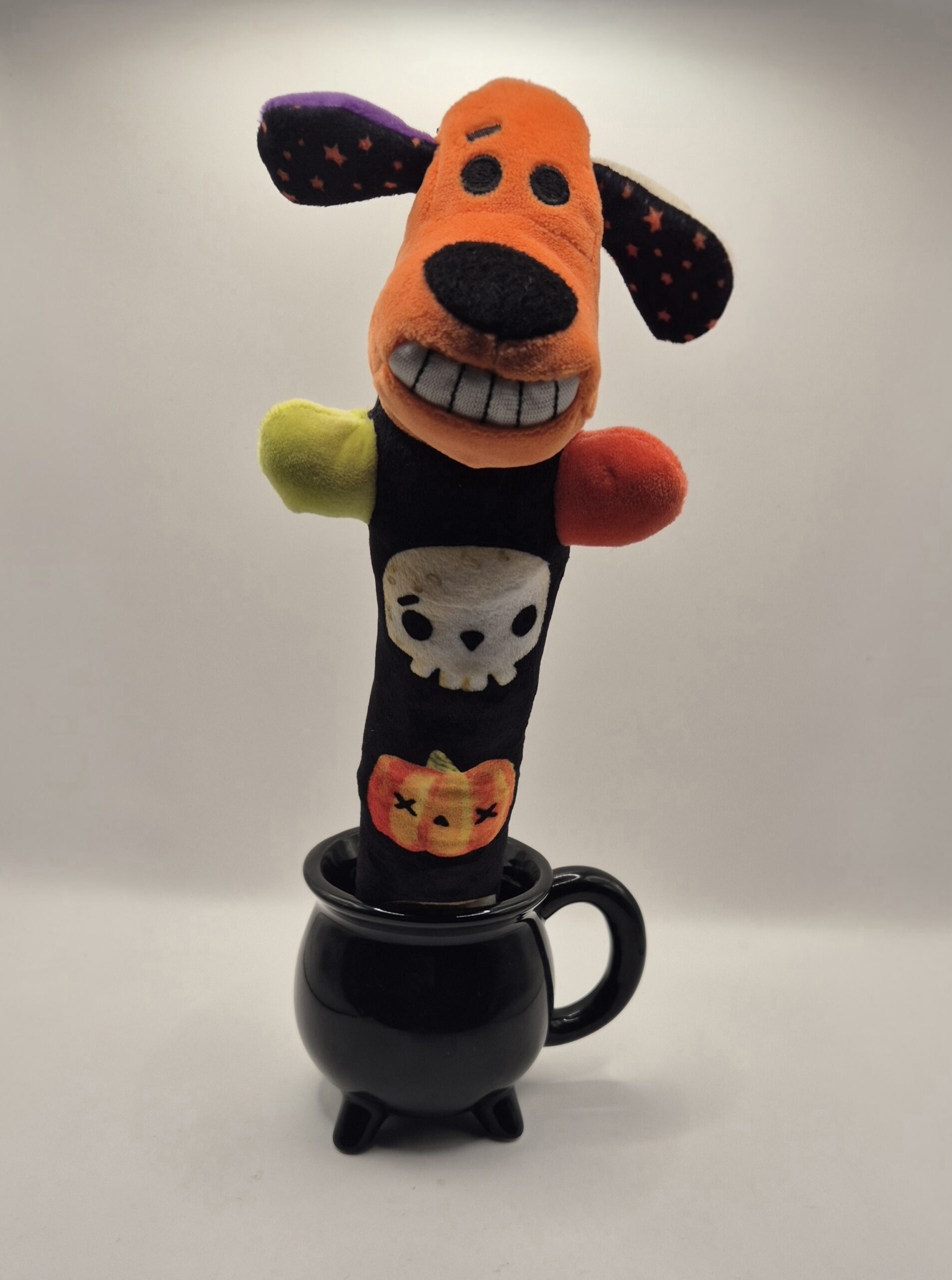 Juguete de peluche en forma de hueso con cabeza de perro y diseños de Día de Muertos o Halloween. Perfecto para que tu mascota destroce algo con estilo, juegue a traer con clase, o simplemente lo acapare como su posesión más preciada. Suave, resistente (hasta donde un perro lo permita), y lo suficientemente extraño para que las visitas pregunten dónde lo compraste.
