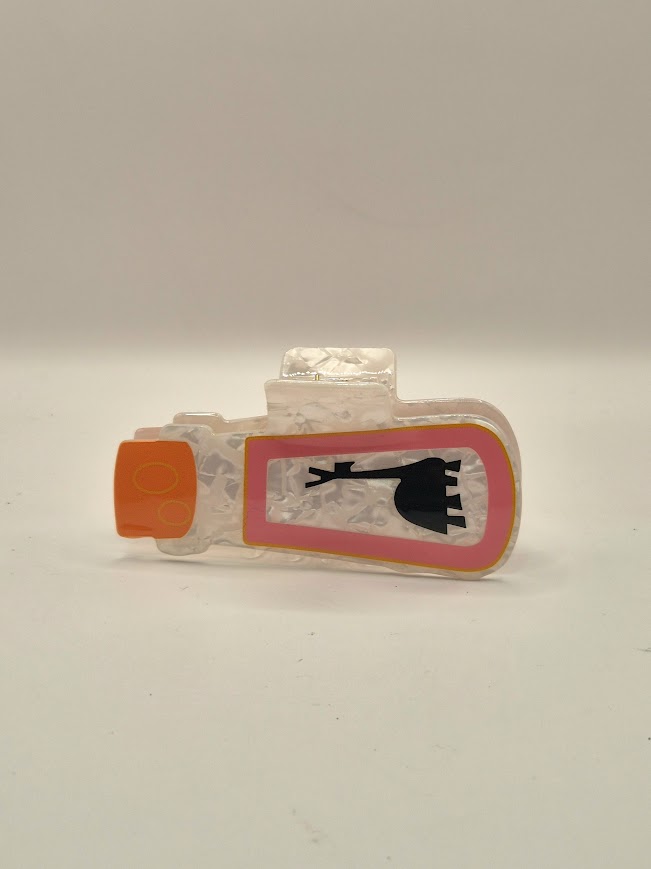 Pinza para el cabello inspirada en la icónica Poción de llama. Diseño translúcido con forma de frasco, detalles gráficos contrastantes y estética directamente salida del laboratorio equivocado. Funciona como accesorio práctico y como guiño inmediato para quien reconoce el desastre antes de que ocurra.