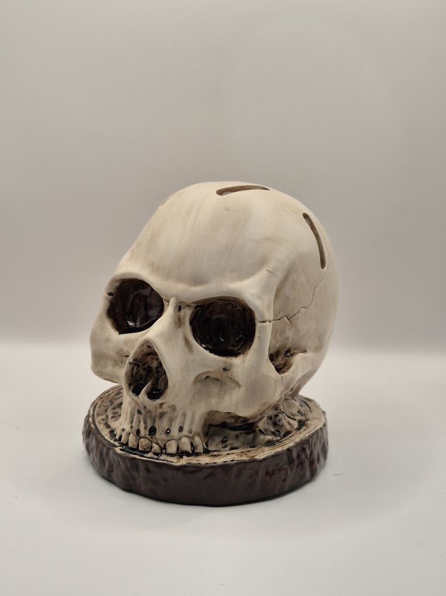 Portacuchillos con diseño de calaca, ideal para organizar cuchillos de cocina mientras elevas inmediatamente el nivel de dramatismo del espacio. Funcional, pesado y mucho más expresivo que un bloque de madera común.