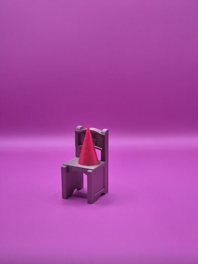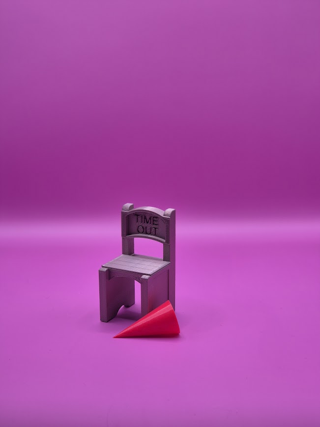 Silla miniatura con letrero “Time Out” y cono de castigo incluido, pensada para juegos de rol donde los dados insisten en sacar 1 en el peor momento posible. Perfecta para señalar fallos críticos que desencadenan atrocidades narrativas, decisiones catastróficas o escenas que el grupo va a recordar con risa nerviosa durante años. El dado culpable va directo a la silla.