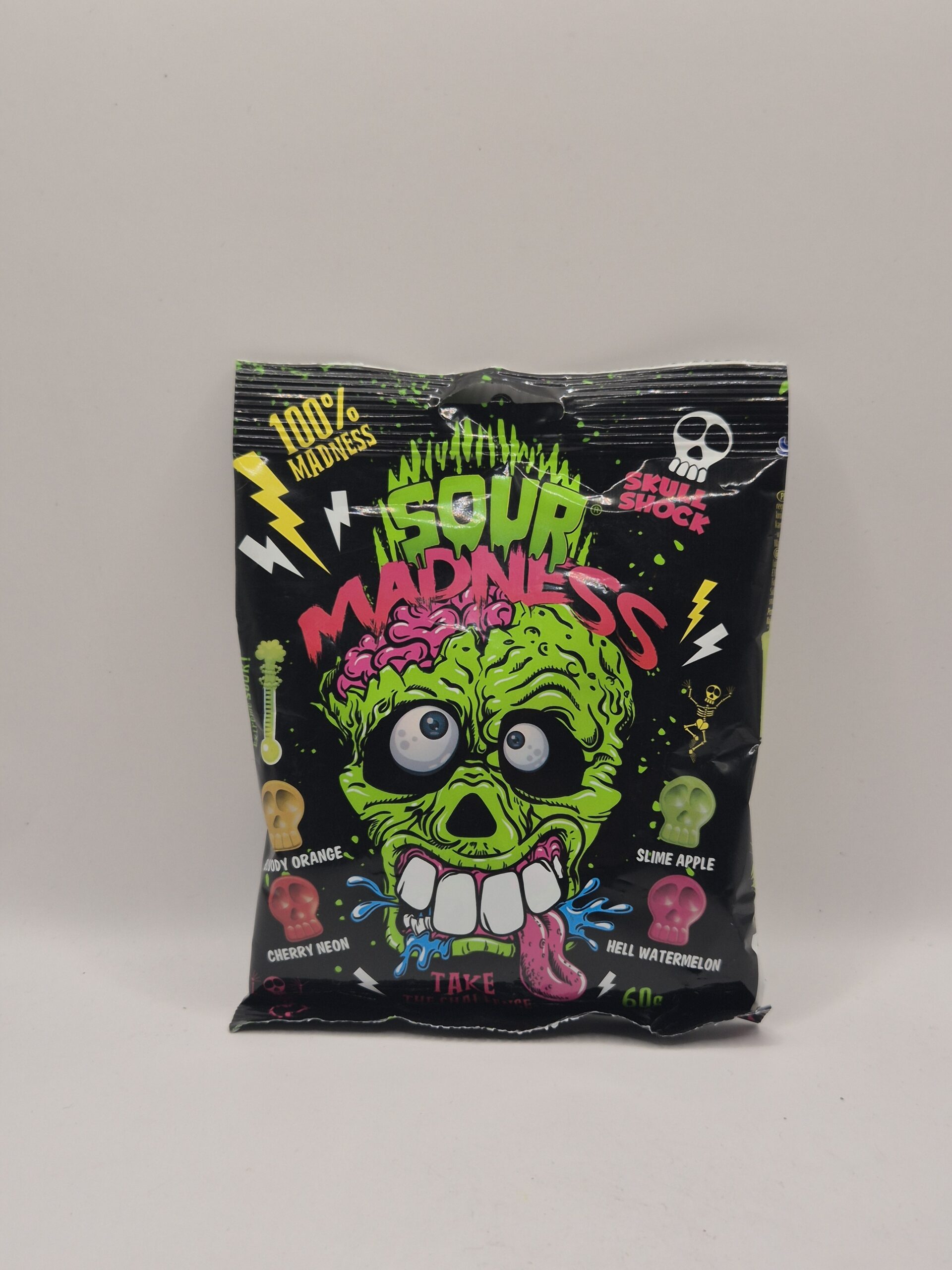 Bolsa de dulces ultra ácidos Sour Madness, una mezcla diseñada para retar tu tolerancia y tu dignidad. Colores radioactivos, sabores agresivos y una experiencia que empieza divertida y termina cuestionable. Ideal para compartir, apostar o comprobar quién realmente se cree valiente.