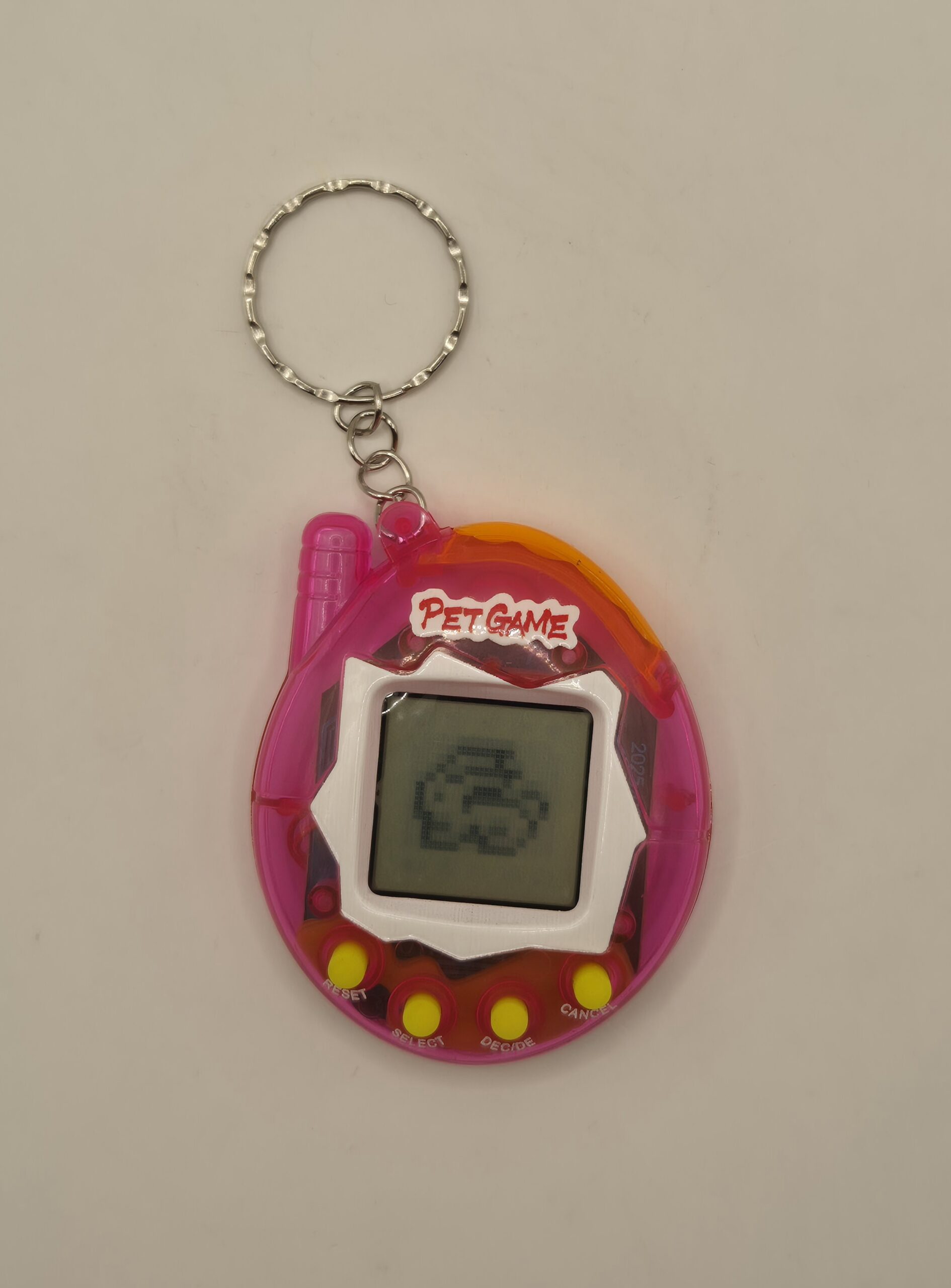 Tamagochi clásico tipo mascota virtual, perfecto para alimentar, cuidar y mantener con vida a tu criatura digital mientras tu vida real se cae a pedazos. Pequeño, nostálgico y peligrosamente adictivo.