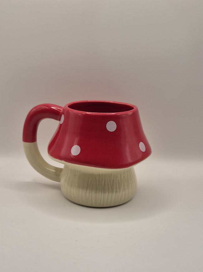 Taza con diseño de hongo clásico, ideal para café, té o bebidas que acompañen mañanas confusas. Cómoda de agarrar, llamativa y perfectamente funcional para consumo cotidiano sin efectos secundarios inesperados.